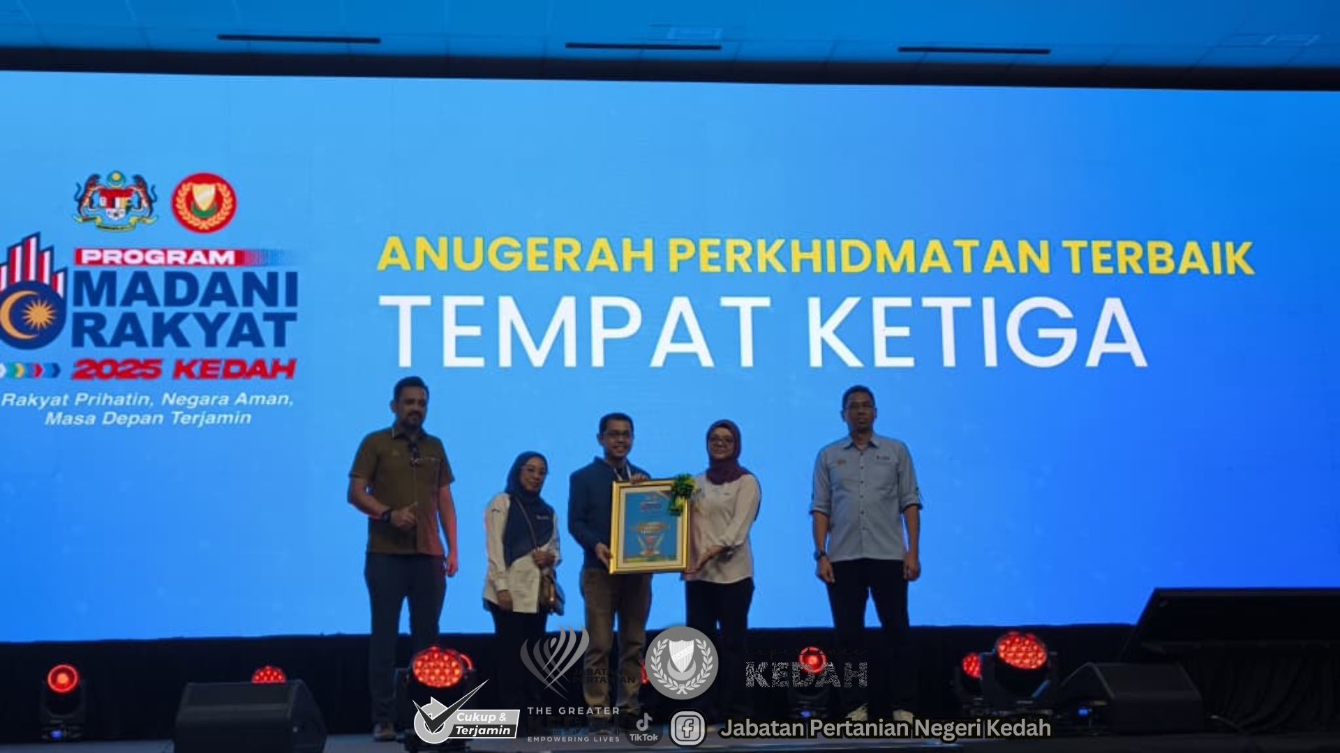 BALING, 6 September – Jabatan di bawah Kementerian Pertanian dan Keterjaminan Makanan (KPKM) terus membuktikan keunggulannya apabila berjaya meraih tempat ketiga bagi kategori Perkhidmatan Terbaik di reruai sempena Program Madani Rakyat Peringkat Negeri Kedah yang berlangsung di Baling dari 4 hingga 6 September 2025.
